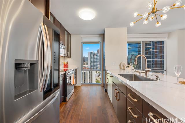 over 100k price reduction! getting all the upgrades and renovation free! incredible find! dream come true beachside location rare 3 bedroom in prestigious ala moana/ward village area! enjoy the coastal lifestyle of waihonua - 3 bedroom, 2 bathroom ocean view, corner unit in the heart of honolulu. the unit is beautifully upgraded with european designer countertops, new appliances, designer lighting fixtures, fully built-in closet systems, and hardwood flooring! world class amenities include: chef's kitchen in club room, fitness center, yoga and private workout studio, spa, pool, theater, bbq cabanas & guest suites! all in a perfect location for an active lifestyle, within 5 min walk to white sand beach at ala moana beach, ala moana mall, whole foods, foodland, shopping & restaurants! 3-bedrooms are rarely available at this great value! must see. turn key. -