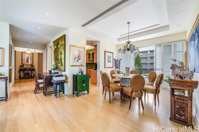 discover refined island living in this elegant 2-bedroom, 2.5-bathroom residence located in the prestigious courtyards at punahou — a sophisticated, low-density building offering unmatched privacy of just 40 total units with 2 units per floor. spanning 1,938 square feet, this generously sized home provides exceptional value per square foot in a serene yet central location. step out of the elevator into your own private lobby and enter a thoughtfully designed space with soaring ceilings, rich hardwood flooring, and expansive windows that frame lush treetop views and the historic beauty of central union church. the residence offers a rare blend of tranquility and convenience, tucked away from honolulu's urban congestion and insulated from the constant churn of new construction. this boutique community is an exceptional alternative to single-family home living. the building has peaceful, uncrowded amenities, beautifully crafted architectural details throughout the common areas, and 24-hour security for peace of mind. a hidden courtyard gem in the heart of town, the courtyards at punahou is where luxury, comfort, and privacy meet! -