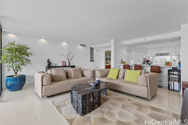 rarely available, thoughtfully updated 2-bedroom, 2-bath residence featuring an expansive open-air lanai/patio that extends the living space outdoors. the unit has been tastefully refreshed with smooth ceilings, new flooring, fresh interior paint, and fully renovated kitchen and bathrooms. spacious bedrooms and a full-size washer and dryer add everyday comfort and functionality. enjoy sweeping ocean and city views. the building has completed and fully paid-for plumbing upgrades, offering added peace of mind. with only four units per floor, residents enjoy enhanced privacy and larger floor plans. fire sprinkler system is in place.resort-style amenities include a heated swimming pool, tennis courts, fitness center, sauna, bbq, jacuzzi and recreation areas, putting green, ev charging stations, and 24-hour security. pet-friendly community with central air conditioning and excellent on-site management. maintenance fees conveniently include electricity, central ac, water, sewer, basic cable, and internet. truly move-in ready—just bring your suitcases and enjoy island living at its best. -