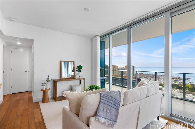rising 34 floors above the vibrant heart of honolulu, a stunning retreat awaits at azure ala moana. this 3 bed, 3 bath residence spans 1,470 sqft of thoughtfully-designed interior space, framed by a 339 sqft wraparound lanai. 9-foot ceilings, floor-to-ceiling windows and engineered european oak hardwood flooring create a polished, contemporary living space. your kitchen is equipped with subzero, wolf and bosh appliances. the spacious primary suite features two walk-in closets, with a freestanding tub in the primary bath. from every room, cinematic city, mountain, and ocean views unfold. an outstanding convenience: two full-sized parking stalls on a preferred parking level with easy access to the elevator lobby. azure ala moana's fabulous amenities include: pool, spa tub, fitness center, club lounge, theater, guest suites, bbq pavilions and a dog park. just blocks from ala moana center and ala moana regional park, you are surrounded by premier shopping and dining, essential services and outdoor activities - placing you truly at the center of it all. -