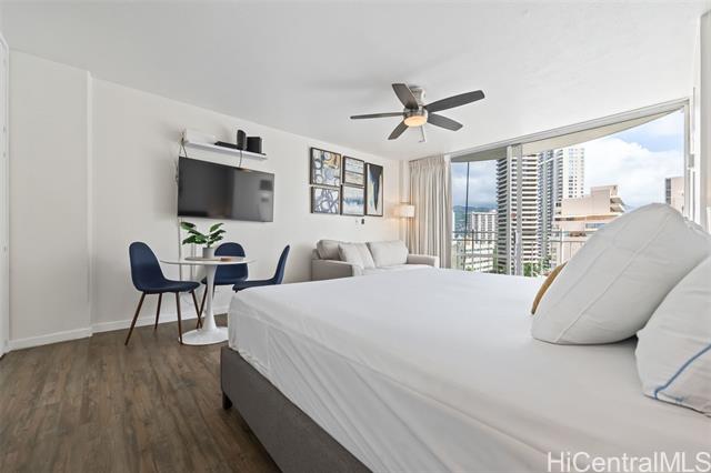 "experience the perfect blend of style and investment potential at the iconic ilikai marina. this stunning studio has been completely reimagined with newly renovated turnkey finishes and furnitures, specifically designed to maximize the guest experience. located in the coveted resort zone, this property allows for legal short-term rentals, making it a high-value opportunity for savvy investors or those seeking a stylish honolulu pied-à-terre. in this thoughtful redesign studio features a fully equipped kitchen with custom cabinetry, a dedicated dining area, and a separate study desk for the modern traveler. the versatile sleeping arrangements include a plush king-size bed and a comfortable sofa bed, ensuring maximum occupancy and comfort. large windows frame a beautiful mountain view, offering a serene backdrop to the vibrant waikiki lifestyle. perfectly positioned for convenience, you are within easy walking distance to the world-class ala moana center, the yacht harbor and the boat park. on-site paid parking is available, and the unit comes fully equipped for immediate airbnb use. well-priced and offering incredible value, this is waikiki living at its finest!" -