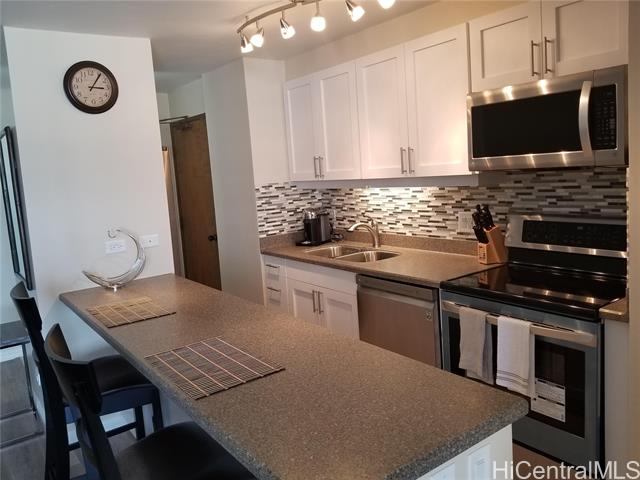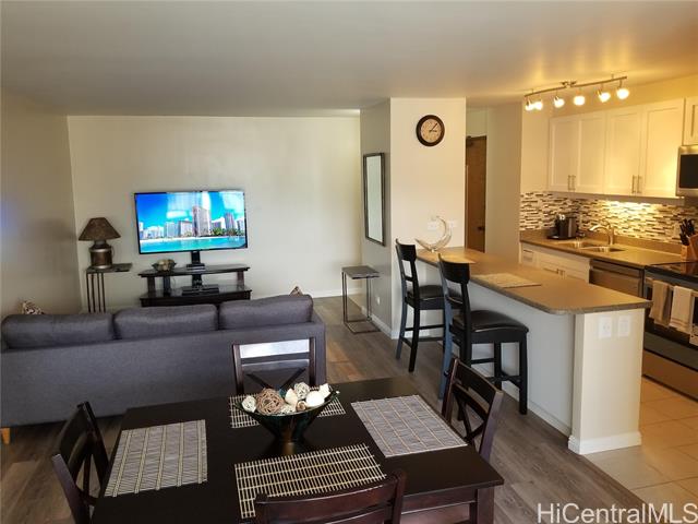 "fee simple 1 bedroom full furnished unit located on a high floor of discovery bay's resolution tower. this unit has been completely remodeled from the kitchen to the bathrooms. luxury vinyl flooring installed throughout the unit with newer stainless steel appliances.washer/dryer 2 months old. bathroom renovation only 2yrs old. turnkey with everything you could possibly need. the unit comes with 1 secure parking stall . beautiful city, mountain and canal views with cool trade wind breezes. enjoy watching the rainbows from your lanai. ideally located and close to the beach, shopping, restaurants and city transportation. ideal for a 1st time home buyer or an investor. minimum 30 day rentals allowed. discovery bay is well managed and maintained with 24hr security and a long term resident manager. amenities include a pool, jacuzzi, sauna, bbq area, and gym with commercial shops. reasonable maintenance fees include sewer, water, hot water, wifi and basic cable. this building has 100% hurricane insurance coverage. the condo is 96.893% fee simple and 3.107% leasehold with the option/right to purchase the remaining leased fee interest prior to expiration of lease." -