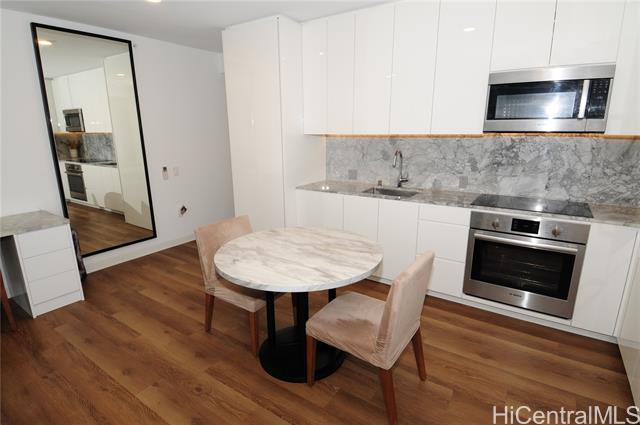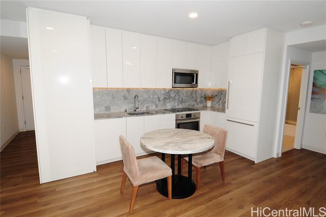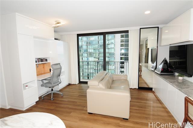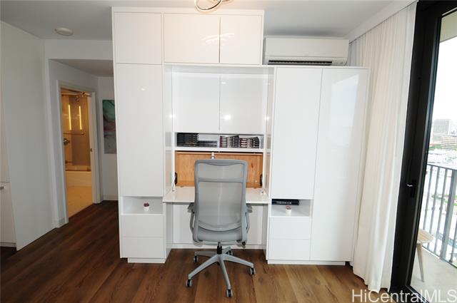 "va assumable loan (@5%) on this spare no expense custom unit featuring additional work station, entertainment storage system, bed system, and added entry cabinets/art presentation area round out this perfect unit. the owners obtained the last few pieces of matching countertop and matched the new cabinets to the white glove developer's package to create this ultimate unit. there are no other 1 bedrooms close to this one! 2 storage units, ultra rare find in kakaako. these are in addition to the over the vehicle storage at the covered parking space. aalii has every amenity you could want in a luxury building. rooftop public areas, large gym with all equipment, movie theatre, cabanas and pool side suites for use by reservation, and even surfboard storage and pet areas on the property. and if you ever choose to leave the building you're in the heart of kakaako next to whole foods, new restaurants, movie theatre, and large park areas. for the outdoor beach lovers you're around the corner from the largest beach park in the state with all the surfing, sunning, and outdoor activities you would ever want. don't miss this one, it is the best one bedroom unit in kakaako." -