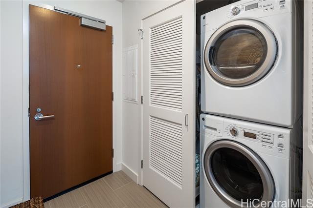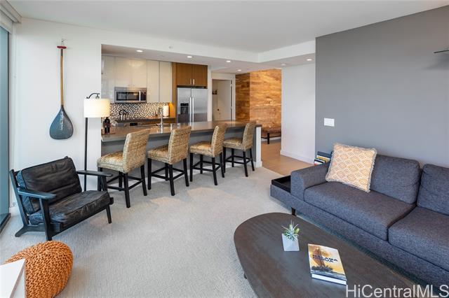 rare east-facing corner-end 09 stack residence at the collection in kaka'ako. meticulously maintained unit 1509 features beautiful mountain-to-ocean views from its east-facing orientation. the larger 2 bedroom floor plan boasts a split-bedroom layout that offers a spacious primary suite with walk-in closet, custom mango wood accent walls, bosch stainless steel appliances, quartz countertops, installed roller shades, and a 77 sq ft covered lanai. includes two side-by-side covered parking stalls and storage locker. building amenities include pool, jacuzzi, cabanas, bbq areas, fitness center, yoga room, and party room. -