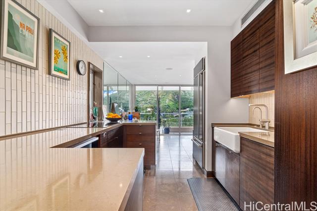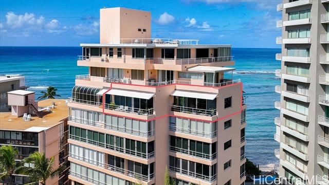 perched above the ironwood trees of kapiolani park on honolulu's coveted gold coast, this oceanfront residence offers sweeping views from three private lanais of the pacific ocean, diamond head, the honolulu skyline, and the ko?olau mountains. completely remodeled by renowned contractor john sutton, the home features high-end finishes including miele, bosch, and sub-zero appliances, european limestone flooring, calacatta marble bathrooms, hand-hewn teak accents, walnut cabinetry, a wet bar, and 9-foot ceilings. modern upgrades include lutron smart lighting and shade controls, a sonos sound system, in-unit washer and dryer, and dual-zone mitsubishi air conditioning. the coral strand is an elegant and meticulously maintained building with recent improvements including a complete plumbing retrofit. amenities include secure underground parking, locked storage, and a heated saltwater pool. co-op property taxes are included in the maintenance fees. -
