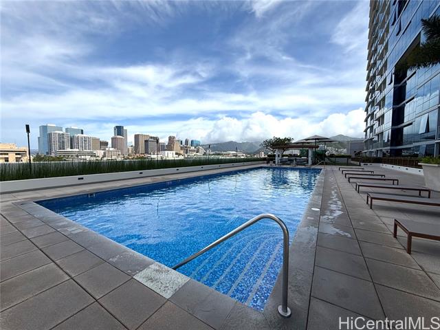 "desirable 2-bedroom, 2-bath, 2-parking unit offering 929 sq.ft. of spacious living with high ceilings, floor-to-ceiling windows, vinyl flooring, and a walk-in closet. relax on a private lanai with stunning high-floor ocean, mountain, and sunset views. resort-style amenities include a heated pool, jacuzzi, fitness center, bbq areas, playground, and party room. indulge living in the heart of kakaako surrounded by salt, downtown, restaurant row, and an abundance of delicious dining options. first open: sunday, march 15th from 1-4pm" -