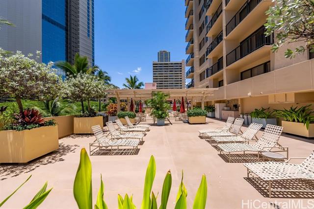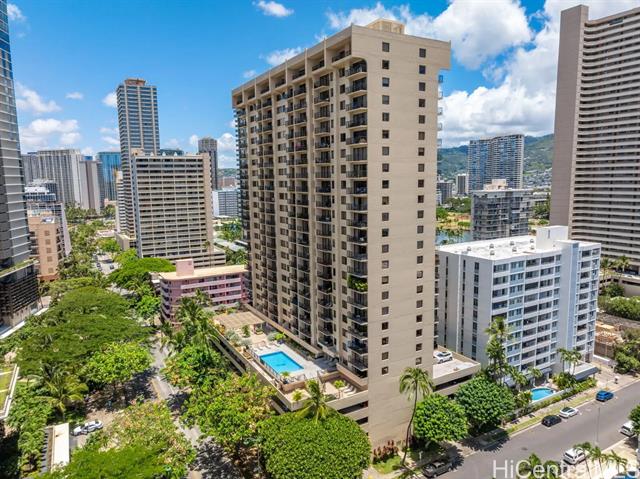 highly sought after center unit with ocean views. unit is in original condition and awaits your upgrades or leave as is and continue to use unit as an excellent investment in world famous waikiki. building has lots of amenities and a very spacious recreation area next to the pool with it's own outdoor kitchen which is perfect for pool parties. 1 covered parking just steps from the front door and elevators. building has security and resident manager on site. hoa fees just reduced, so not all hoa fees go up! -