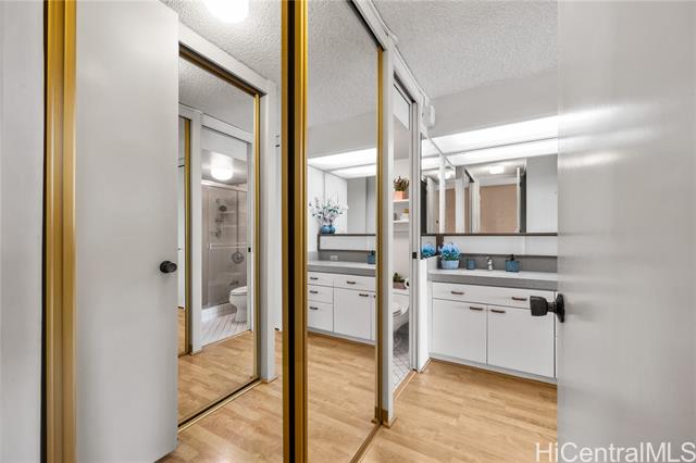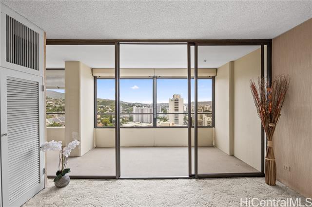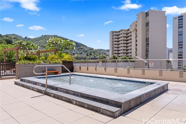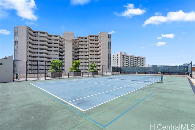 beautiful diamond head and lush mountains views from this high floor fee simple one bedroom, one bathroom with covered assigned parking. this unit features a large, private lanai with shutters with access from both the living room and bedroom, an in unit washer/dryer and central air conditioning. enjoy the city lights as you relax on the spacious lanai. a well maintained building that offers resort like amenities which include an amazing swimming pool, tennis court, bbq facilities, whirlpool, car wash and welcoming recreation area. this well managed building has 24 hour security, a resident manager, ample guest parking and is conveniently located with easy freeway access. don't miss out on the wonderful opportunity. -