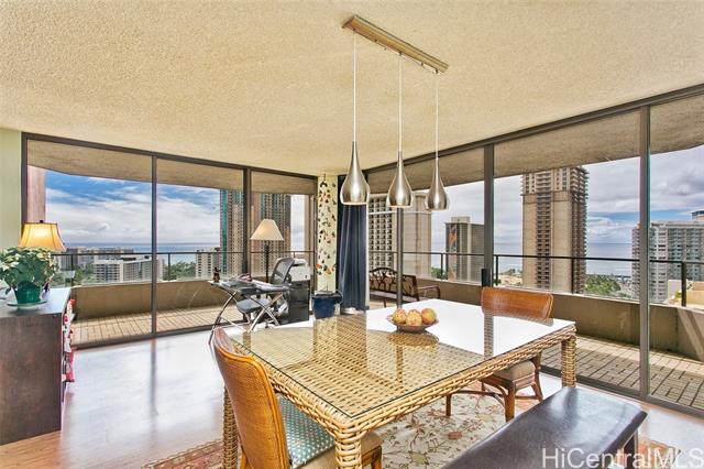 "huge 2/2 corner-end unit with three window sides, tastefully remodeled in waikiki's original premier residential luxury building. feels like a house in the sky with a generously sized usable open lanai. bring your pets. - two pets are allowed with no weight limit. ~ welcome to paradise. -- this property is leasehold with an expiration on june 30, 2051. the current master lease rent is $883.20/mo + get. the sandwich lease was already paid off in full." -