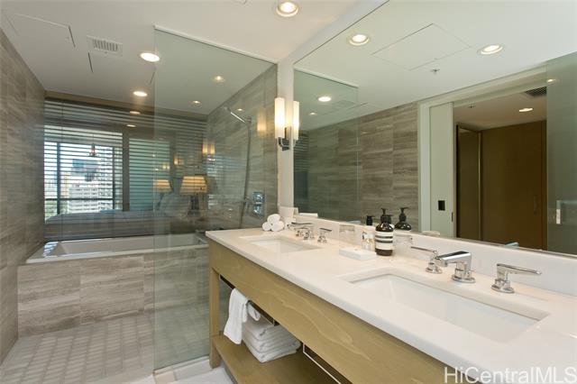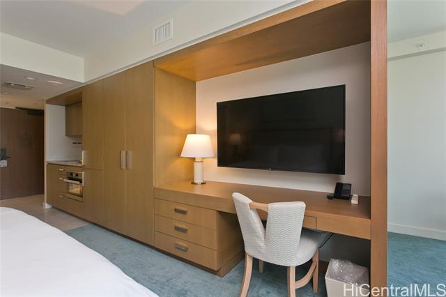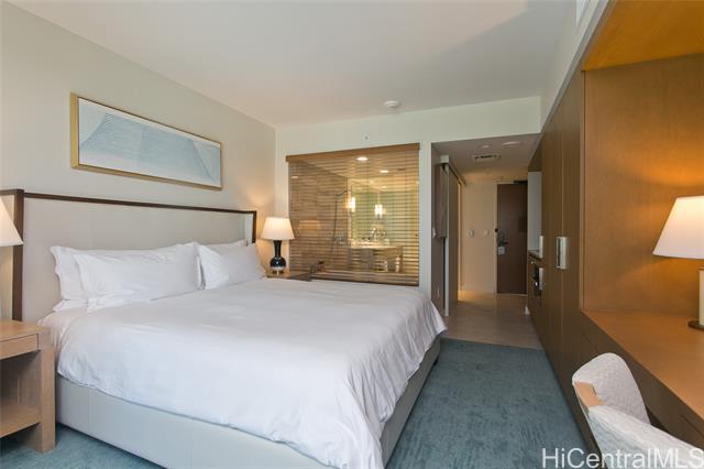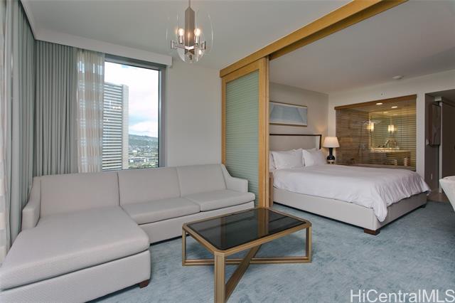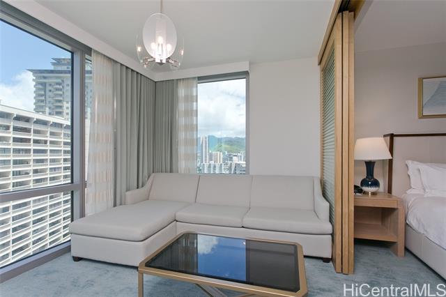 luxury living from this well-maintained studio at waikiki ritz-carlton residences ewa tower. this unit has been enjoyed as a second home only a few weeks per year and is not in the hotel rental pool. the floor to ceiling windows catch both majestic mountain (mauka) and stunning ocean (makai) views making this location and unit layout special. beautiful ocean & city views overlooking fort derussy can be enjoyed from your covered balcony. sliding doors allow for more privacy when closed off from bedroom area making it easy to entertain with a dining table & large sofa/bed. the efficient layout also includes a king size bed, full bathtub, a separate shower stall, kitchenette, washer/dryer unit. unit has been upgraded with new carpet, paint and a temper-pedic bed. enjoy luxury amenities including 2 pools, jacuzzi spa, gym, yoga studio, award winning restaurants, concierge, valet and much more. -