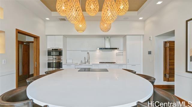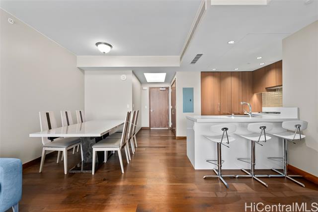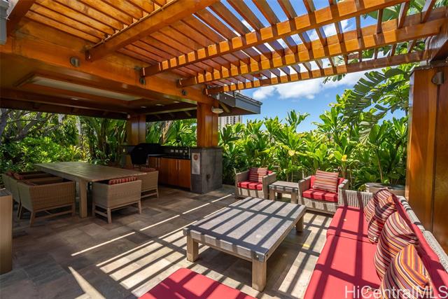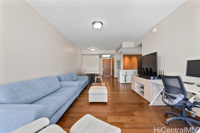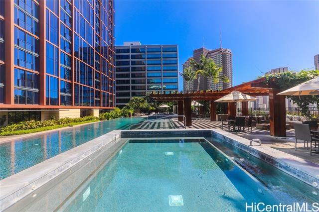 the one ala moana, is a prestigious residence offering concierge service and exceptional amenities. located next to ala moana center, this exquisite building was crafted by esteemed local developers, the kobayashi and macnaughton groups, marking the inception of the condominium development boom in honolulu. this expansive 1 bedroom unit is the largest of two floor plans and boasts high-end features: high ceilings, studio becker kitchen, subzero refrigerator, wolf gas range/oven, miele dishwasher, elegant hardwood floors, motorized shades, and sprinklers. resort-style amenities elevate your lifestyle. beautifully landscaped terrace features: infinity pool, hot tub, bbq cabanas, fire pit, playground, putting green, and dog park. interior amenities are equally impressive, offering a world-class chef's kitchen, catering kitchen, private dining room, wine tasting room, children's creativity room, exquisite library, movie theater, game room with pool table/shuffleboard/large screen tvs, guest suites, men's & women's locker rooms with sauna, fitness center, private massage room and salon, and a serene yoga room. this unit comes with 2 parking stalls and 1 storage locker. -