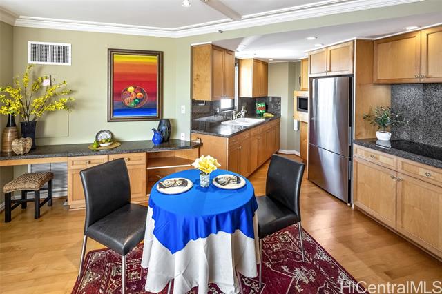 wake up to breathtaking diamond head views in this well-appointed 1-bed, 1-bath in the king tower. this bright unit features a modern kitchen, wood-style flooring, and plantation shutters. the building offers a vacation-like atmosphere with a refreshing pool, peaceful koi pond, and several dedicated bbq stations. fitness enthusiasts will love the on-site tennis and pickleball courts, while the various community seating zones provide the perfect place to unwind. management is a breeze with an attentive resident manager available on the premises. complete with a clean community laundry facility and professional on-site oversight, this property offers incredible value and resort-grade perks. -