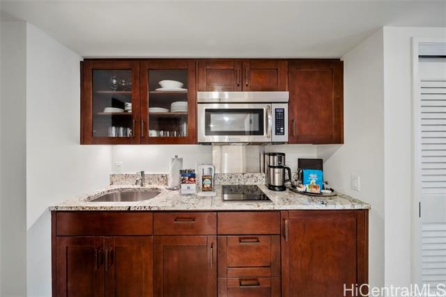 enjoy the benefits of an lxr luxury hotel in a fully furnished studio just minutes from waikiki beach. the former trump tower waikiki has been rebranded as the ka la'i waikiki beach, a hilton lxr global luxury brand. luxurious guest amenities include an exquisite infinity pool, luxury spa, fitness room, restaurants on property, valet service and an attentive concierge staff. this condominium hotel unit has a larger than average luxury bathroom with double vanities, and a separate soaking tub and shower. great as a vacation home and currently not in the hotel pool which means a big savings on expenses. consider it for a long term rental or second home. parking stall is included for owner occupant when they stay, however, there is a monthly fee for a long term tenant or if the owner isn't occupying the unit and they wish to leave their car parked long term. your luxury lifestyle awaits. -