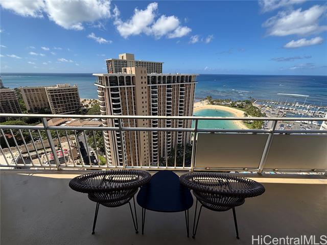 "ideal property for both investment and owner use! higher floor unit, which totally renovated in 2014 and has been managed by ilikai hotel and luxury suites as hotel condo. this 500 square foot unit is furnished with upscale appliances and modern fixtures that exude the style and comfort you would expect to find in a luxury hotel suite, well maintained and generate good income. special features include kitchen equipped with stainless steel appliances, designer bathroom with granite countertops and tiled showers, 40-inch flat screen televisions, and split ac. you can enjoy sweeping and dramatic views of the duku kahanamoku lagoon from this spacious 120 square foot lanai." -