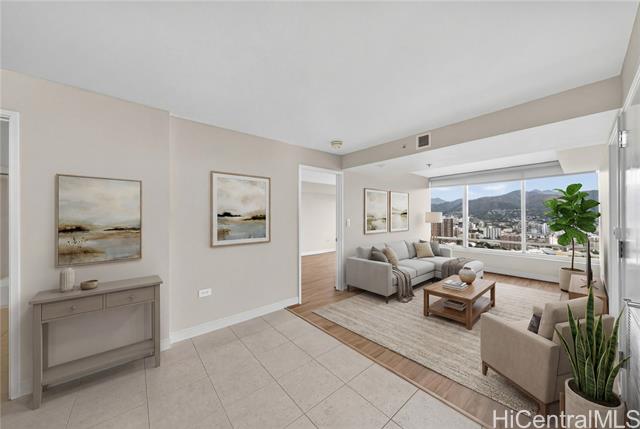 enjoy breathtaking, unobstructed mountain views from the cool, preferred side of the building in the heart of vibrant kaka'ako. this spacious 2-bedroom, 2-bath residence features an efficient, well-designed floor plan with no wasted space, an open-concept kitchen, and separated bedrooms for added privacy. interior highlights include stainless steel appliances, natural stone countertops, tile flooring, and central a/c for year-round comfort. the unit comes with two tandem parking stalls. residents enjoy exceptional amenities including 24-hour security, bbq areas, a saltwater pool, jacuzzi, sauna, two private theaters, a party room with catering kitchen, fire pits, a fully equipped fitness center, and a dog park. convenience is at your doorstep with blue tree cafe, doraku sushi, and chai's island bistro located downstairs. just steps away is whole foods market and the vibrant ward village, offering an array of shops, dining, and entertainment options. you're also minutes from ala moana beach park, ala moana center, the neal s. blaisdell center, and waikiki. live in the center of it all in one of honolulu's most sought-after neighborhoods. property to be sold as-is. -