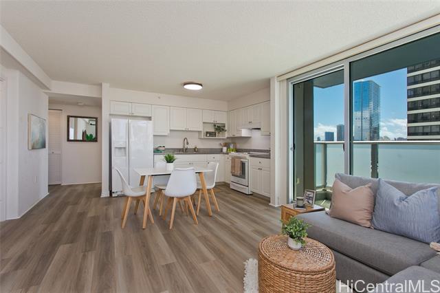 "amazing value in kakaako! this ""22"" stack unit is one of the larger 2-bedroom, 2-bath floorplans boasting 865 sq ft interior and 103 sq ft wrap around lanai. floor to ceiling glass sliders create a stunning ""glass corner"" letting the natural light, peek-a-boo ocean views and cross-breezes in! facing the se direction, this coveted corner unit sits on the quiet side of the complex and features new vinyl plank flooring in the kitchen/dining/living area and new carpeting in the bedrooms. maintenance fees are some of the lowest in honolulu at $546/month for a 865 sq ft unit! you'll appreciate this newer (2017) build equipped with fire sprinklers, double walls, multiple awning windows in each bedroom, split ac in all rooms and in-unit washer/dryer. the generous size primary bedroom allows for a sitting or desk area. hallway bathroom is spacious with an ada accessible entry, step-in shower & storage closet. each tower is designed with a cafe-style lobby, parking structure, abundant guest parking, 24-hour security, huge recreation/meeting rooms & on-site management (bldg b). two unassigned parking stalls conveyed with unit. close to downtown, salt, ward village, straub, queens & more!" -