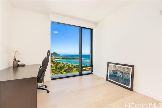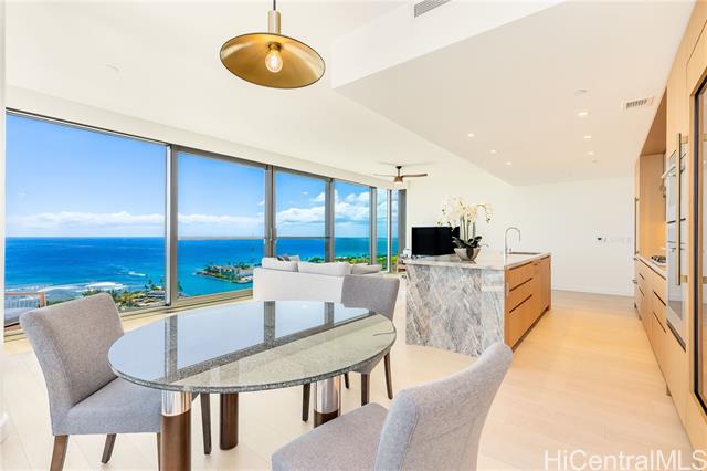 "this corner residence is located in ward village's newest luxury tower, completed in november 2024. the 3-bedroom, 3-bathroom home offers panoramic views of diamond head, the ocean, and sunsets. the interior features numerous upgrades, including motorized shades throughout, ev-charging readiness, toto neorest washlets, and a full suite of wolf and sub-zero appliances. the residence also includes two parking stalls and a storage unit. amenities include an infinity-edge pool, lap pool, private pool house, bbq cabanas, fitness center, wine room, theater, spa, 24-hour concierge, valet service, and guest suites. located in the heart of ward village, the property offers convenient access to ala moana beach park, whole foods, restaurants, and shopping." -