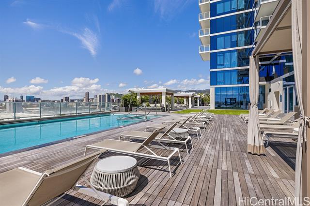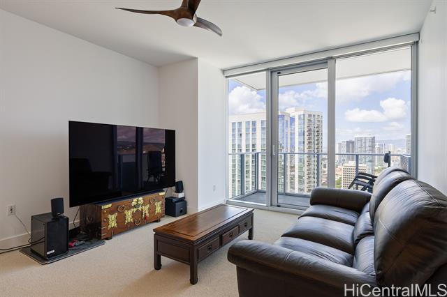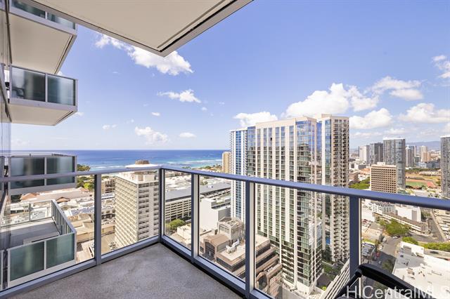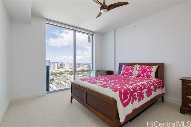 enjoy luxury convenient living on the 35th floor in mid town honolulu. unit is in excellent condition with 9 foot high ceilings with ceiling fans in the bedrooms and living room. enjoy the ocean and mountain views from the living room, lanai and both bedrooms. azure offers an exercise room, recreation room, movie theater, 4 grills and 2 cabanas, puppy park, 4 guest rooms for out of town visitors, and concierge services. the unit has two parking stalls and storage. across the street from ala moana center, walmart, sam's club, great restaurants and much more. very close to magic island and ala moana beach. azure is fully covered with 100% hurricane insurance. -