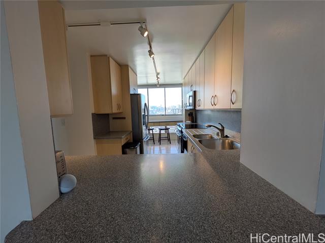 location, location, location. the banyan tree plaza is centrally located near the university of hawaii, major private schools and medical facilities. the corner end unit has panoramic views looking at the central union church grounds, scenic mountains and shriners hospital to sunset views towards the west. this 2 bedroom 2 bath 2 covered parking unit was renovated a few years ago with new kitchen and bathroom counter tops and cabinets. this unit has one of the largest living areas in the building with 1556 sf. the building has great amenities like a resident manager's office, secured parking, security, 20 guest parking, a salt water pool, bbqs and more! the building has completed the repiping process and the owner has paid off the special assessment. -