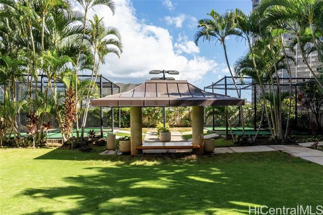 "true top floor penthouse with extra high ceiling. desirable 02 stack on cool side of building, ocean and mountain views. central air conditioning. 2 conveniently located parking spaces at lobby level, both have with storage cabinets, with extra wide parking space. lots of amenities: basketball, racket ball, tennis/pickle ball courts; bowling, golf, fitness center, pool table, tv lounge, library, swimming pool, jacuzzi, sauna, party/conference room with kitchen, bbq, koa pond, car wash area, bicycle storage area, guest parking. 24/7 security, secured building, gated parking. va-approved, pet-friendly, 100% insured. on-site cafe and massage room. prime location, steps to restaurants, farmers market. just minutes downtown financial district, hospitals, kakaako, shopping, airport, and freeway access." -