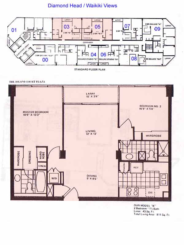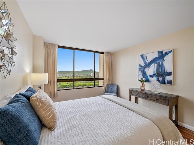 this beautiful 2-bedroom, 2-bathroom unit offers breathtaking views of diamond head and the ala wai golf course from every window. the spacious interior features ample closet space throughout, providing both comfort and convenience. the unit includes a lanai for indoor/outdoor living, washer and dryer, along with one covered parking stall. residents enjoy resort-style amenities, including a swimming pool, sauna, spa, putting green, tennis courts, pickleball court, bbq area, recreation room, and car wash facilities. maintenance fees (hoa) cover electricity, central air conditioning, water, sewer, hot water, basic cable, and internet. iolani court plaza is equipped with a full sprinkler system and fire alarms for added safety, as well as backup battery power to support essential services during outages and emergencies. don't miss this opportunity to own this highly desirable unit in iolani court plaza! -