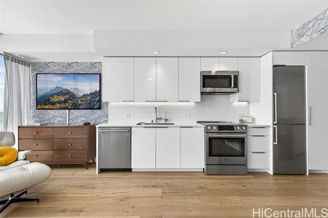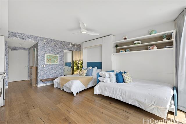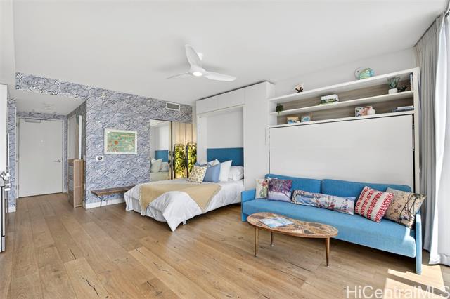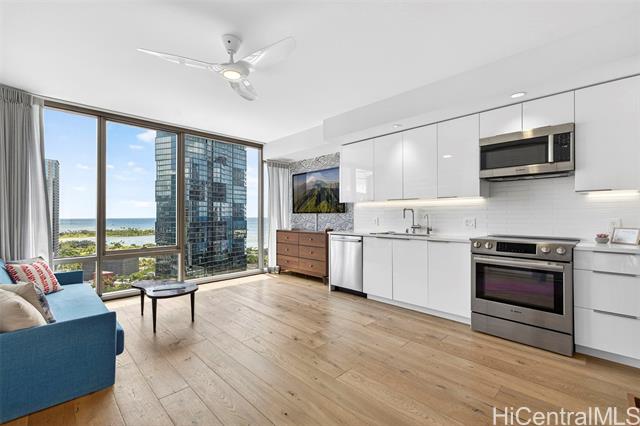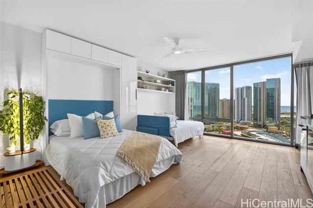experience the ultimate flexible living space at ae'o in a studio that lives larger than its compact footprint suggests. at the heart of this thoughtfully designed unit are two convertible wall beds that quietly transform the space, effortlessly creating functional zones to maximize comfort and cleverly providing abundant storage. this adaptable space features stunning ocean views, bosch appliances and laundry, a toto washlet, and your very own private electric vehicle (ev) charger for exclusive on-demand fast charging. ae'o residents enjoy top-tier amenities, including guest suites, a fitness center, wet steam room / dry sauna, dog park, multiple pools, cabanas and grills, and private gathering spaces. in addition to convenient access to whole foods, in ward village you're just minutes away from o'ahu's best dining, shopping destinations including ala moana center and ala moana beach park. welcome home! -